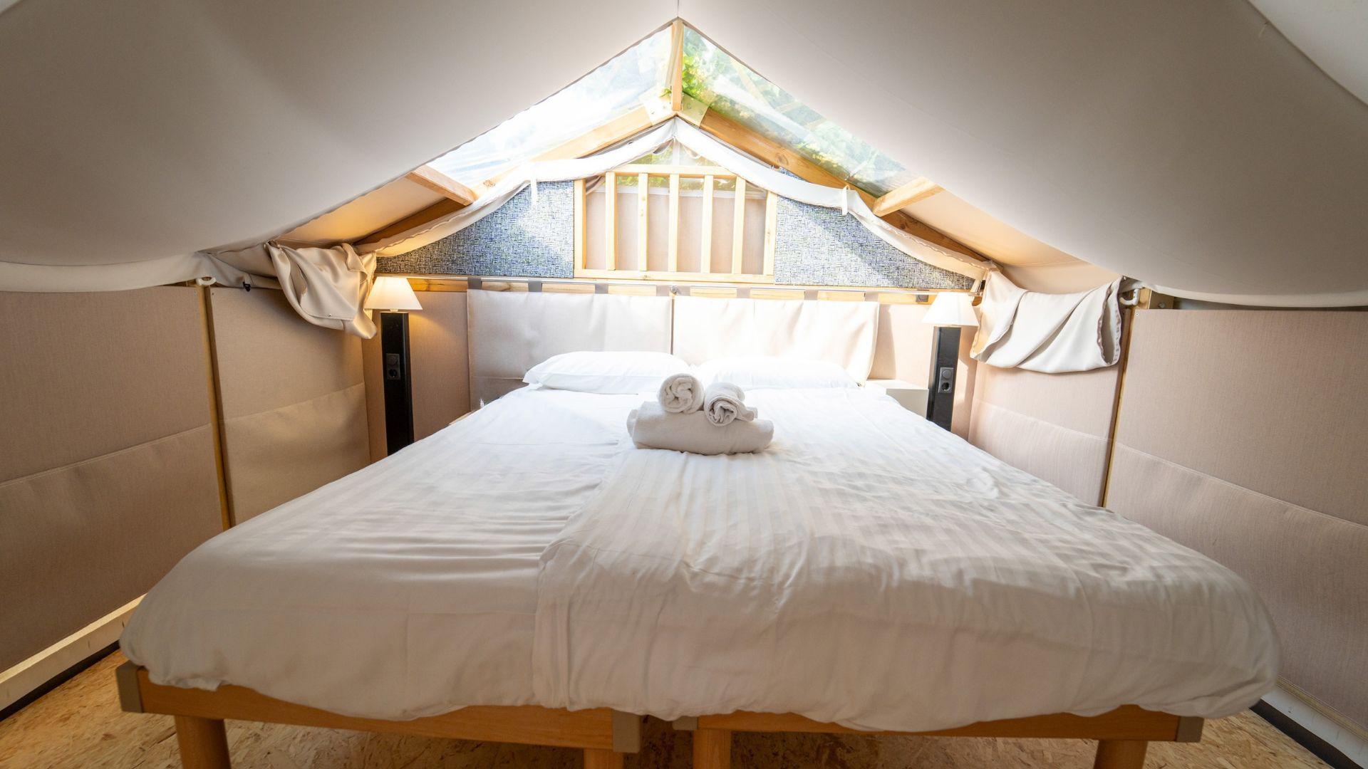 Air Lodge 2.0 je nová verze našeho stanu Air Lodge, který nabízí více prostoru. Prostor je rozdělen do dvou úrovní s 15 metry čtverečními v přízemí i v horním patře. Svou glampingovou dovolenou si tak můžete užít naplno. Stan má 1 hlavní ložnici v prvním patře s 1 manželskou postelí a výhledem na oblohu. Druhá manželská postel je v přízemí. Součástí stanu je kuchyňský kout a kompletní koupelna se sprchou. Venku je velká dřevěná terasa s venkovním nábytkem. Domácí zvířata nejsou povolena.